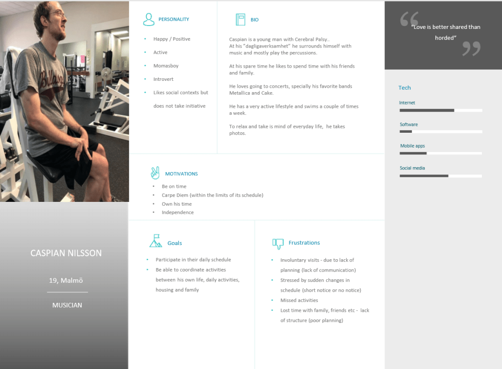 Some of the reflections generally about the app after navigating through it were that the user interface might be a bit hard to understand. Finding the event scheduling was frustrating but in itself the app in its’ function is limited, with big buttons and straight to the point. The suggestion is to completely remove the calendar function and only have events displayed that are occuring in the near future, as with the home screen. The app also seems to make the communication between user and assistant easier and perhaps should be marketed as a means of communication between those two parties. The subject suggested that the only ones who can determine if the functions of the app are useful and easy to use are the users themselves, perhaps in accordance with their assistants.