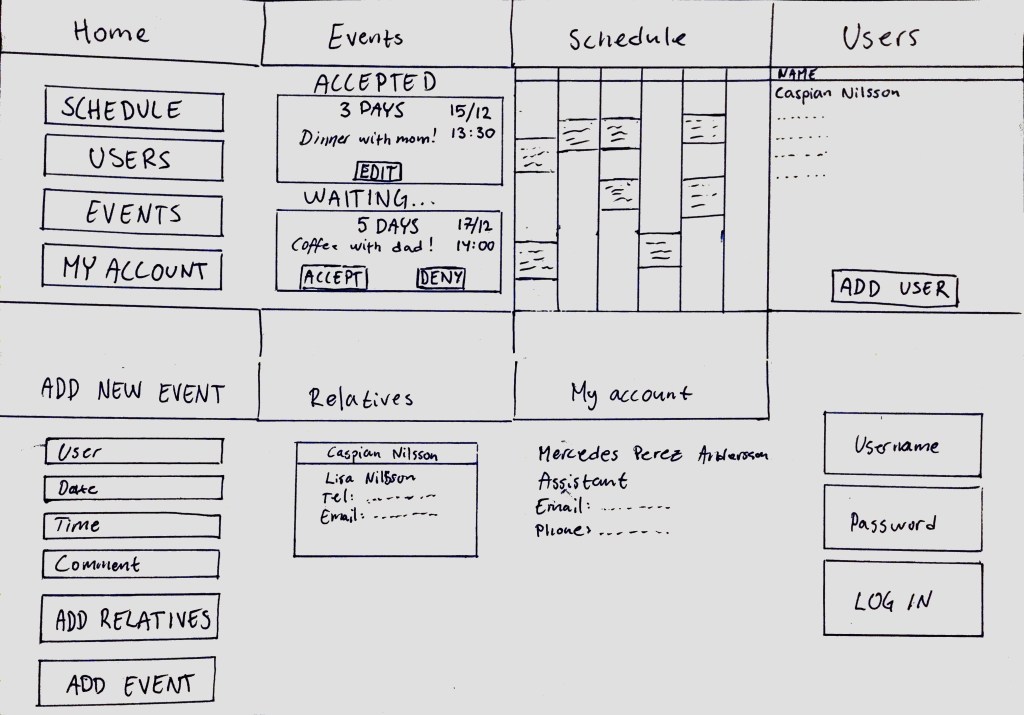The subjects respectively were given the tasks of finding a relative and booking an event. One subject tried to find the relative by clicking on ”Users” and accesing the user list. Clicking on a user name took the subject to the more info page about the user. Information about relative’s name was present but not clickable and therefore no possibility of contacting the relative or finding out the contact info. The contact possibility is only available through an existing, scheduled event for the user. The subject with task of booking an event through the assistant interface tried to do it by clicking on ”User events” and found only a list of booked events for the users that the assistant is responsible for. Finally, the subject remembered that through the icon for calendar, some kind of calendar should appear, and it did, with a big ”ADD NEW EVENT” button.